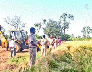 पुणे : पिकांवर वनविभागाचा जेसीबी