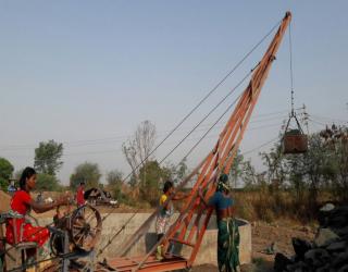 पोटाची खळगी भरण्यासाठी खान्देशातील महिला विहीर खोदून चालवितात क्रेन