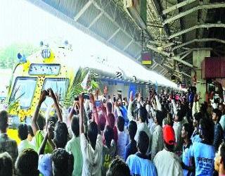 डेमू लोकलचे दौंडला ढोलताशांनी जंगी स्वागत