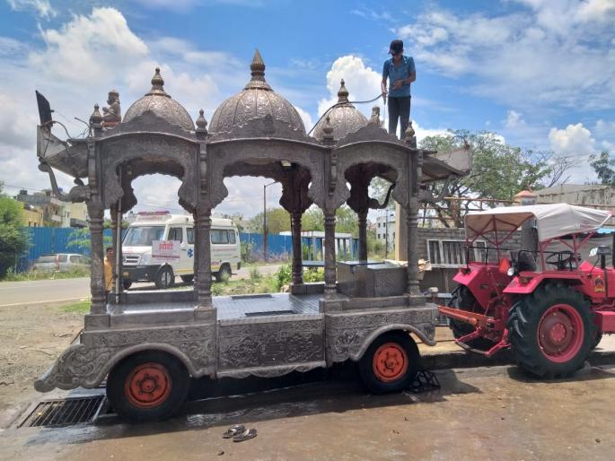 श्री संत तुकाराम महाराज संस्थानच्या वतीने बायोबबल पध्दतीने श्री संत तुकाराम महाराजांचा पालखी सोहळा 1 जुलैला पायी पंढरपूरकडे प्रस्थान ठेवणार आहे. मात्र कोविडचा वाढता प्रभाव पाहता शासन स्थरावर त्याचा निर्णय होवून पुढील आढवड्यात पालखी सोहळ्यास शासन परवानगी देणार किंवा नाही हे चित्र स्पष्ट होणार आहे. मात्र तो पर्यंत संस्थानच्या वतीने पालखी सोहळ्याच्या तयारीला सुरवात केली आहे. याचाच एक भाग म्हणजे पालखीच्या रथाची साफसफाईला सुरवात केली असून आज संस्थानच्या कर्मचार्यांनी पालखी रथाची साफ सफाई करून पाण्याने धुण्यात आला असून त्याची साफसफाई केली आहे. येत्या दोन दिवसात पालखी रथाबरोबरच, अब्दागिरी, गरूड टक्के, पुजेचे थाल, चौरग व पाट, चोपदाराचा दंड, यांना चकाकी देण्याचे कामे करण्यात येणार आहे. जेणे करून शासनाने पालखी सोहळ्यास परवानगी दिली तर ऐन वेळी धावपळ होणार नाही. त्यामुळे पालखी सोहळ्याची तयारी सुरू केली असल्याची माहिती भानुदास मोरे यांनी दिली आहे.
