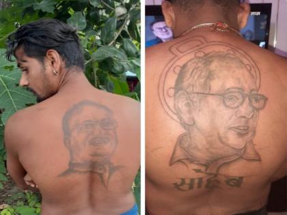 कुटुंबाबतील बारामतीकर तरुणाच्या पाठीवर चक्क 'साहेब' नावाने शरद पवारांचा चेहरा काढला