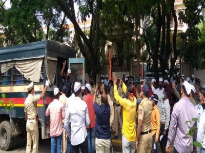 आंदोलकांनी भगवा झेंडा घेऊन व एक मराठा लाख मराठा लिहिलेली टोपी घालून आंदोलनामध्ये सहभागी झाले होते. चौकातून आंदोलक उपमुख्यमंत्री अजित पवार यांच्या सहयोग सोसायटीकडे घोषणाबाजी करत रांगेत जाताना ‘एक मराठा लाख मराठा,आरक्षण टिकवा नाहीतर मराठा समाजाच्या खासदार,आमदार,मंत्र्यांनी राजीनामा द्या, आरक्षण आमच्या हक्काचे, नाही कोणाच्या बापाचे..कोण म्हणतं देत नाय, घेतल्या शिवाय राहत नाय’....अशी जोरदार घोषणाबाजी करण्यात आली.