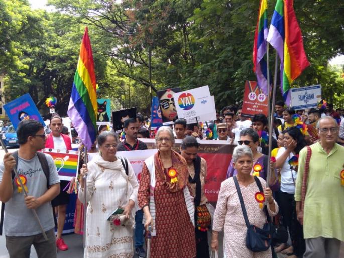 पुणे : नका करु दुजेपणा, तृतीयपंथी, समलैंगिकांना अापले म्हणा, 377 कलम रद्द करा, अशा घाेषणा देत अापल्या हक्कांसाठी समलैंगिक, तृतीयपंथी रस्त्यावर उतरले हाेते. समपथिक ट्रस्टच्या वतीने अाज गे, तृतीयपंथी, ट्रान्सजेंडर (एलजीबीटी) अभिमान पदयात्रेचे अायाेजन करण्यात अाले हाेते. पुण्यातील संभाजी बागेपासून ही पदयात्रा सुरु झाली व डेक्कवरुन फर्ग्युसन रस्त्यावरुन पुन्हा संभाजी बागेसमाेरच तिचा समाराेप करण्यात अाला. या पदयात्रेते शेकडाे लाेक सहभागी झाले हाेते. गेल्या सात वर्षांपासून ही पदयात्रा पुण्यात काढण्यात येत असून यंदाचे या रॅलीचे अाठवे वर्ष हाेते.