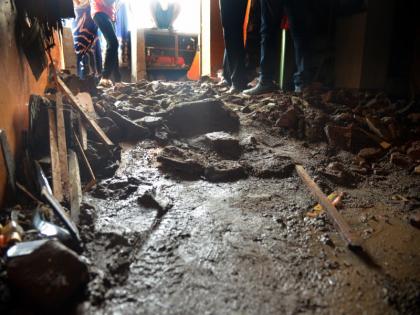 त्यांनी आरडाओरडा करताच स्थानिक नागरिक मदतीला धावले. त्यांनी दरवाजा तोडून सर्वांना बाहेर काढले. दरम्यान, पाण्याच्या प्रवाहामुळे सिमेंट विटांची भिंत कोसळली. ही भिंत शेजारी राहणाऱ्या उमेश भागोजी चव्हाण यांच्या दुकानावर कोसळली. ही भिंत सामाईक असल्याने दोन्ही घरांचे नुकसान झाले. चव्हाण यांचे पुढील बाजूस दुकान असून पाठीमागे असलेल्या दोन खोल्यांमध्ये सर्व कुटुंबिय झोपलेले होते. पाण्याच प्रवाह तसाच पुढे शेजारच्या घरांमध्ये घुसायला सुरुवात झाली. त्यामुळे काही घरांच्या भिंतींना तडे गेले. तसेच अनेकांच्या घरांमध्ये पाणीच साचले होते. त्यामुळे संसारोपयोगी वस्तूंचे नुकसान झाले.