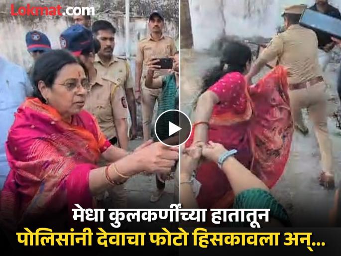 पुणे जिल्ह्यातील मंचर येथे दर्गा आणि पांडवकालीन बारव संदर्भातील वाद गेल्या काही दिवसांपासून चर्चेत आहे. काही दिवसांपूर्वी एका दर्ग्याच्या भिंतीचा काही भाग कोसळल्यानंतर त्या ठिकाणी खाली मंदिर असल्याचा दावा काही हिंदुत्ववादी संघटनांनी केला होता. या पार्श्वभूमीवर प्रशासनाने दर्ग्याचे बांधकाम तात्पुरते थांबवले होते. या प्रकरणाची पाहणी करण्यासाठी मेधा कुलकर्णी मंचर गेल्या. पाहणीदरम्यान त्यांनी त्या ठिकाणी हिंदू देवी-देवतांचा फोटो लावण्याचा आग्रह धरला. मात्र परिस्थिती बिघडू नये म्हणून पोलिसांनी त्यांना तसे न करण्याची विनंती केली..मात्र त्यानंतरही मेधा कुलकर्णी फोटो लावण्यावर ठाम राहिल्याने पोलिसांनी त्यांच्या हातातील देवाचा फोटो काढून घेतला. या घटनेनंतर काही काळ तणावाचे वातावरण निर्माण झालं होतं.