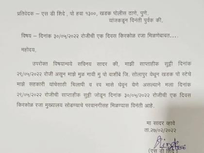 पुण्याच्या पोलीस कर्मचाऱ्याचं पत्र वाचून व्हाल हैराण! सुट्टीसाठी सांगितलेलं कारण एकदा वाचाच...