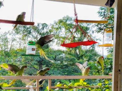 लॉकडाऊनमध्ये तब्बल २५ - ३० पोपटांशी राधिकाची जमली गट्टी; पहाट होते सुमधूर आवाजाने