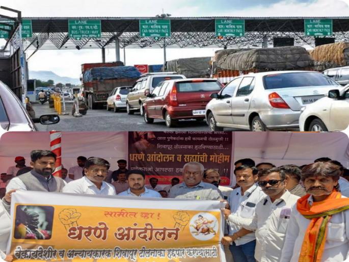 धनकवडी : खेड शिवापूर टोलनाका कृती समितीचा विजय असो... या टोल नाक्याचं करायचं काय.. खाली डोकं वर पाय..सामील व्हा सामील व्हा.. धरणे आंदोलनात सामील व्हा... यासह छत्रपती शिवाजी महाराजांचा विजय असो अशा घोषणांनी कात्रज चौक दणाणून गेला होता. पुणे-सातारा मार्गावरील खेड-शिवापूर टोल नाक्यावरील टोल वसुली बंद करावी आणि टोल नाका हटवावा, या मागणीसाठी खेड शिवापूर टोल नाका हटाव कृती समितीने पुण्यातील कात्रज चौकात आंदोलन करण्यात आले. यावेळी आंदोलकांनी टोल प्रशासन आणि एनएचएआय विरोधात जोरदार घोषणाबाजी केली