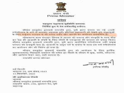''लोकमान्य बाळ गंगाधर टिळक यांनी स्वातंत्र्याच्या लढाईत लोकांना एकत्र आणण्यासाठी या गणेशोत्सवाची सुरुवात केली. दगडूशेठनं टिळकांची हीच परंपरा मजबूत करण्याची जबाबदारी पार पडली आहे. स्वातंत्र्याच्या अमृत महोत्सवी वर्षी गणेशोत्सवाचे ऑनलाइनचे आयोजन अजूनच विशेष वाटू लागले असल्याचं त्यांनी पत्रातून नमूद केलंय.''