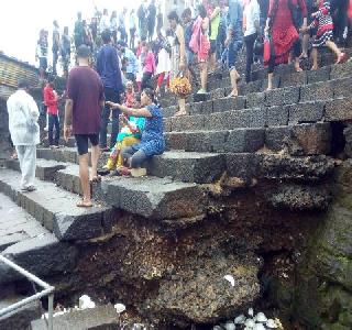 ऑनलाइन लोकमतलोणावळा, दि. 25 - पर्यटकांची पंढरी म्हणून उल्लेख केला जाणार्या भुशी धरणाच्या पायर्यांचा काही भाग तुटला असल्याने याठिकाणी पायर्या वाहून जाण्याचा धोका निर्माण झाला आहे.