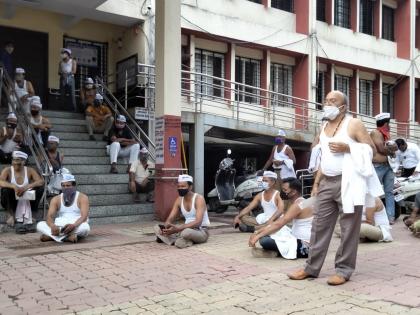 पुण्यातील आरटीओ कार्यालयात रिक्षाचालक आक्रमक; रिफ्लेक्टर सक्तीच्या निषेधार्थ गणवेश काढत आंदोलन