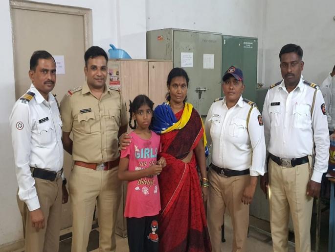 येरवडा (पुणे): मार्केट यार्ड येथून रस्ता चुकलेल्या तेरा वर्षाच्या मुलीला वाहतूक पोलिसांच्या सतर्कतेमुळे नातेवाईकांच्या ताब्यात देण्यात यश आले. कोरेगाव पार्क वाहतूक विभागाच्या पोलीस अधिकारी व कर्मचारी यांनी रस्ता चुकलेल्या मुलीला पालकांचा तात्काळ शोध घेऊन मदत केली.