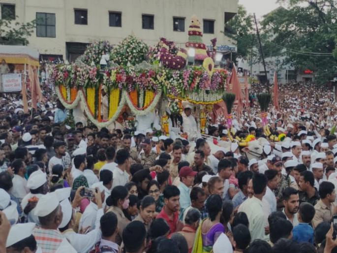 आळंदी : श्री. संतश्रेष्ठ ज्ञानेश्वर माउलींच्या १९३ व्या आषाढी पायीवारी पालखी सोहळ्याने सोमवारी (दि.१२) सकाळी सहाला लाखो वैष्णवांसह अजोळघरातून पंढरीचा मार्ग धरला. प्रस्थानपूर्वी मध्यरात्री माउलींच्या आजोळी पादुकांना रुद्र्भिषेक करून पंचामृत पूजा, पंच्चपक्व्वान्न नैवद्य, आरती, पसायदान घेण्यात आले. संपदा सोहळा नावडे मनाला लागला टकळा पंढरीचा !!१!! जावे पंढरीशी आवड मनाशी ! कधी एकादशी आषाढीई !!२!! तुका म्हणे एशे आर्त ज्यांचे मनी ! त्यांचे चक्री पाणी वाट पाहे !!३!! अशाच पद्धतीची भावना अलंकापुरीत दाखल झालेल्या सर्व वारकऱ्यांमध्ये दिसून येत होती. रविवारी रात्री उशिरा अजोळघरात विसावलेल्या या सोहळ्यात माउलींच्या पादुकांचे लाखो वारकऱ्यांनी सहज व सुलभ दर्शन घेतले. तत्पर्वी रविवारी (दि.११) पावणे सातच्या सुमारास पालखीने मंदिरातून प्रस्थान ठेवले. मानकरी व ग्रामस्थांच्या खांद्यावरील मंदिर प्रदक्षिणा व प्रथेप्रमाणे चक्रांकित महाराजांच्या पूजेनंतर सोहळा पहिल्या मुक्कामी नवीन दर्शनबारी मंडपात (आजोळी) विसावला. प्रस्थान सोहळ्यादरम्यान बंद केलेली दर्शनरांग प्रस्थानानंतर मोठ्या गतीने दर्शन मंडपात दर्शनासाठी आत घेण्यात आली. माउलींच्या दर्शनसाठी दिवसभर लांबच - लांब रांगा लागलेल्या असतानाही रात्री प्रस्थान सोहळ्यानंतर दर्शनासाठी भाविकांच्या रांगा वाढत होत्या. धन्य आज संत दर्शनाचा ! अनंत जन्मीचा शिण गेला !! मज वाटे त्यांशी अलीगन द्यावे ! कदा न सोडावे चरण त्यांचे !! या अभंगाप्रमाणे प्रत्येक वारकरी माऊलींचे दर्शन घेण्यासाठी कासावीस होऊन त्यांच्या चरणावर माथा ठेकून स्वता:ला धन्य करून घेत होता. संपूर्ण अलंकापुरी चैतन्यमय, धार्मिक वातावरणात दंग झाली होती. सोमवारी पहाटे साडेपाच वाजता परंपरेनुसार शितोळे सरकारांचा माउलींच्या पालखीला नैवद्य दाखविण्यात आला. सहाच्या दरम्यान शितोळे सरकारांचे अश्व अजोळघरी आणून त्यांना मानपान देण्यात आले. त्यानंतर माउलींची पालखी आळंदी ग्रामस्थ व मानकऱ्याच्या खांद्यावर घेऊन नगरपालिकेसमोर सजविलेल्या रथात विराजमान करण्यात आली.