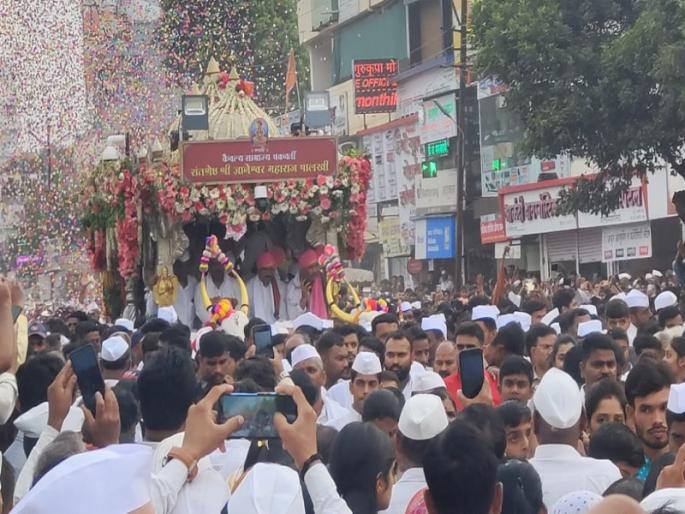 तत्पूर्वी, माउलींना आळंदीत घेऊन येण्यासाठी स्थानिक नागरिक, ज्ञानेश्वर विद्यालयाचे तसेच शहरातील अन्य शाळांमधील विद्यार्थी तसेच भाविकांनी थोरल्या व धाकट्या पादुका मंदिरस्थळी मोठी गर्दी केली होती. थोरल्या पादुका मंदिरात पहिला व धाकट्या पादुका स्थळावर दुसरा विसावा घेण्यात आला. थोरल्या पादुका मंदिरात अध्यक्ष विष्णू तापकीर यांच्या हस्ते आरती करण्यात आली. तर धाकट्या पादुका विसाव्यावर प्रकाश काळे यांनी पालखीचे स्वागत केले. त्याठिकाणी पालखीवर फुलांचा वर्षाव करण्यात आला. शहरात विविध वाद्यांच्या स्वरात माउलींच्या पालखीचे जंगी स्वागत करण्यात आले. उद्या (दि. १३) दुपारी साडेबाराला ‘श्रीं’ची पालखीतून नगरप्रदिक्षणा मिरवणूक होईल. हजेरी मारुती मंदिरात पालखी सोबतच्या दिंड्यांचे हजेरीचे अभंग घेतले जाणार आहेत.