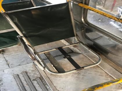‘लोकमत’ने केलेल्या पाहणीमध्ये अनेक बसमधील आसने फाटलेली दिसून आली. काही ठिकाणी बसण्यासाठी आसनच नाही. काही बसमध्ये पत्रे उचकटले आहेत. खिडक्यांना काचा नाहीत. त्यामुळे प्रवाशांना धोकादायक पध्दतीने प्रवास करावा लागत आहे. काही बसमध्ये आसनांमधून खिळे बाहेर आले होते. त्यामुळे अनेकवेळा कपडे फाटल्याच्या तक्रारी प्रवाशांनी केल्या. काही बसच्या सायलेंसरमधून धुराचे लोट निघत होते. त्याचा बसमधील प्रवाशांबरोबरच रस्त्यावरील वाहनचालकांनीही त्रास होत होता. बहुतेक बसचे स्वयंचलित दरवाजे बंद होते. हे दरवाजे दोरीच्या सहाय्याने बांधुने ठेवले होते. काही बसमध्ये दरवाजांना सिमेंटचे ब्लॉक लावल्याचे दिसले.