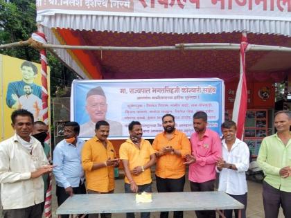 वडगांव बुद्रुक येथील शिवसेनेचे विभाग प्रमुख निलेश गिरमे यांनी कोश्यारी यांच्या वाढदिवसानिमित्त आपल्या कार्यकर्त्यांसोबत केक कापला. याचवेळी महाराष्ट्राच्या विकासासाठी आम्हाला विधान परिषदेचे १२ आमदार रिटर्न गिफ्ट म्हणून द्या, अशी मागणी केली आहे.