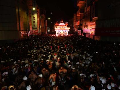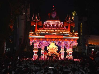 श्रीमंत दगडूशेठ हलवाई सार्वजनिक गणपती ट्रस्ट १३२वे वर्ष; एलईडी लाईट, झुंबर व दिव्यांनी उजळला रथ; हजारो भाविकांची उपस्थिती