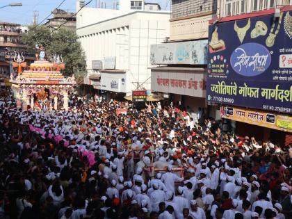 लक्ष्मी रस्त्यावरुन बाप्पाची मिरवणूक जात असताना ठिकठिकाणी गणपती बाप्पा मोरयाच्या जयघोषाने गणरायाला नमन करण्यात आले. मंगळवारी रात्री ८ च्या सुमारास टिळक चौकात रथाचे आगमन होताच हा क्षण डोळयात साठविण्यासाठी गणेशभक्तांनी अलोट गर्दी केली. गणपती बाप्पा मोरया, पुढच्या वर्षी लवकर या... च्या जयघोषात रात्री ८. ४५ वाजता पांचाळेश्वर घाट येथे हौदात मूर्तीचे विसर्जन करुन गणरायाला निरोप देण्यात आला.