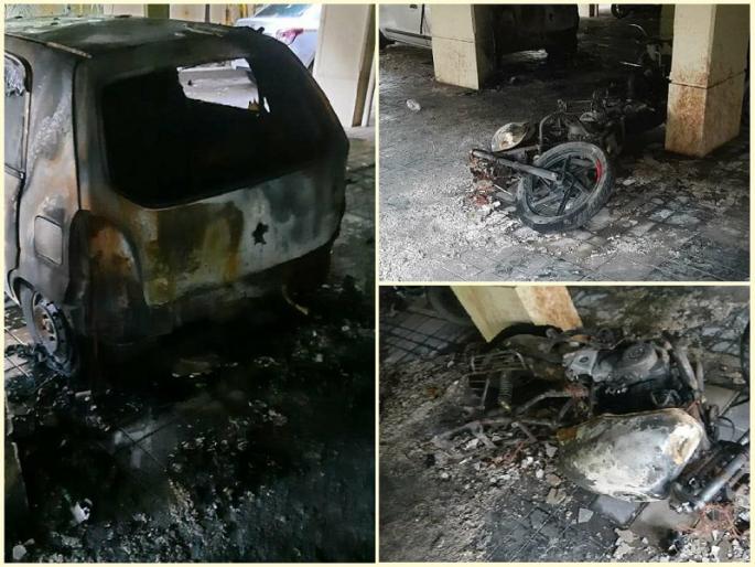 पुणे : काल (शुक्रवारी) मध्यराञी ०२:१८ वाजता नर्हेमधील हरिहरेश्वर पार्क, बी विंग, माताजी नगर, पुणे-४१ याठिकाणी आग लागल्याची माहिती अग्निशमन दलाला मिळाली. त्यावेळी तत्काळ नवले अग्निशमन केंद्राचे अग्निशमन वाहन रवाना झाले. घटनासथळी पोहोचताच इमारतीच्या पार्किंगमधे वाहनांना आग लागल्याचे पाहताच जवानांनी आगीवर पाण्याचा मारा करुन आग पूर्ण विझवत धोका दूर केला. तत्पुर्वी दलाची मदत पोहचण्याआधी स्थानिकांनी बादली व नळीच्या साह्याने पाणी मारत आग विझवण्याचा प्रयत्न केला असल्याचे निदर्शनास आले.