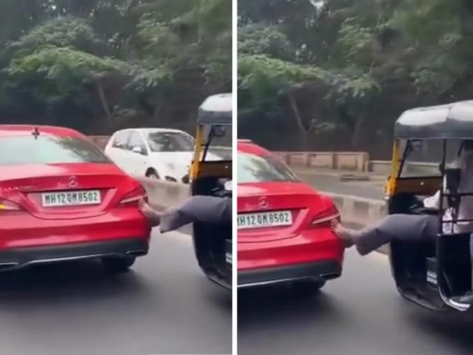 पुणे : पुण्यात कुठं आणि कधी काही घडू शकतं. असाच एक आश्चर्यचकित करणारा प्रसंग पुण्यात दिसून आला आहे. आता एक नवीन व्हिडीओ समोर आला आहे. ज्यामध्ये चक्क रिक्षावाला मर्सिडीज गाडीला धक्का मारताना दिसत आहे. यावर नेटीझन्सने अनेक गमतीशीर प्रतिक्रिया दिल्या आहेत. एक रिक्षावाला मर्सिडीजला धक्का मारताना व्हिडिओ पाहून अनेकांनी त्यावर आश्चर्यकारक प्रतिक्रिया दिल्या आहेत.
