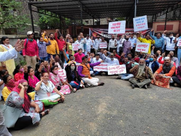 पुणे : नाट्यगृह चालू झालीच पाहिजेत, कलाकारांना न्याय मिळालाच पाहिजे, अशी घोषणाबाजी करत पुण्यातील जिल्हाधिकारी कार्यालयासमोर रंगकर्मींनी विविध मागण्यांसाठी आंदोलन केले. यावेळी आंबेडकर पुतळा ते जिल्हाधिकारी कार्यालयासमोर मोर्चाही काढण्यात आला.
