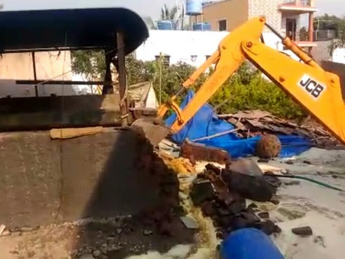 उरळी कांचन येथील दारु भटट्यांवर राज्य उत्पादन शुल्क विभागाचा छापा उरुळी कांचन : हवेली तालुक्यातील शिंदवणे व सोरतापवाडी परिसरात अनाधिकृत गावठी दारूभट्ट्यांवर राज्य शुल्क विभागाच्या वतीने छापा टाकण्यात आला. त्यात १७ हजार १५० लिटर तयार दारू,४३ हजार लिटर दारू तयार करण्याचे रसायन ,१० वाहने व इतर साहित्य असा एकूण २२ लाख ४८ हजार ७५० रुपयांचा मुद्देमाल जप्त केला. ही कारवाई बुधवारी (दि.२८) रोजी मध्यरात्री करण्यात आली. गेल्या काही वर्षात जिल्हा ग्रामीण पोलिसांच्या हद्दीत पहिल्यांदाच मोठ्या प्रमाणात गावठी दारू साठा जप्त करण्यात आला आहे. पुणे ग्रामीण पोलीस अधीक्षक सुवेज हक यांनी एक वर्षापूर्वी पदभार स्वीकारल्यानंतर प्रत्येक पोलीस स्टेशनच्या हद्दीतील मटका, जुगार, दारू इत्यादी अवैध धंदे बंद करण्याचे आदेश स्थानिक पोलिसांना दिले होते. त्या आदेशानुसार, ग्रामीण पोलिसांनी आपापल्या हद्दीतील अवैध धंदे बंद झाल्याचा लेखी अहवाल पोलीस अधिक्षकांना दिले होते. मात्र, राज्य उत्पादन शुल्क विभागाच्या वतीने बुधवारी करण्यात आलेल्या कारवाईने पोलीस अधिकाºयांनी पाठविलेला लेखी अहवालात त्रुटी असल्याचे निष्पन्न झाले आहे. हवेली तालुक्याच्या पूर्व भागात शिंदवणे व सोरतापवाडी गावांच्या परिसरात मोठ्या प्रमाणावर गावठी दारू तयार केली जात असल्याची खात्रीशीर माहिती राज्य उत्पादन शुल्क विभागाला मिळाली होती. त्याआधारे पुणे विभागीय उपायुक्त अर्जुन ओव्हाळ यांच्या मार्गदर्शनाखाली पुणे उत्पादन शुल्क विभागाच्या विभागीय भरारी पथकाने बुधवारी या ठिकाणांवर कारवाई करीत मोठा साठा हस्तगत केला. या कारवाईमध्ये पाच ठिकाणी दारू भट्ट्या सुरु होत्या. पोलीस आल्याचे पाहून भट्टी मालक व भट्टीवर काम करणारे कामगार अंधाराचा फायदा घेवून पसार झाले. याठिकाणी ३५ लिटरचे ५४ कॅन व ४३ हजार लिटर रसायन आणि मळीने भरलेले बॅरल आढळून आले. मात्र , दारूच्या वाहतुकीसाठी वापरण्यात येणाºया ५ दुचाकी जप्त करण्यात आल्या. सबंधित भट्टी मालक व जप्त केलेल्या वाहन मालकांना फरारी घोषित करून त्यांच्या विरोधात गुन्हे दाखल करण्यात आले आहेत. फोटो ओळ - शिंदवणे व सोरतापवाडी गावच्या हद्दीत जेसीबीच्या सहाय्याने गावठी दारूभट्टया व दारू साठविण्याच्या टाक्या उध्वस्त करताना राज्य उत्पादन शुल्क विभागाचे अधिकारी व कर्मचारी.