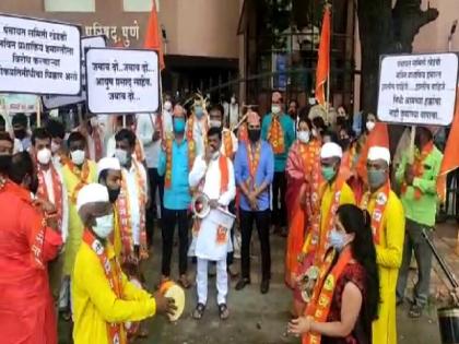 सांग सांग भोलानाथ..खेड पंचायत समितीच्या इमारतीचे काम कधी सुरू होणार? पुण्यात शिवसेनेचे'जागरण गोंधळ'आंदोलन