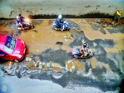 शहरामध्ये गेल्या आठ-दहा दिवसांपासून संततधार पाऊस पडत आहे. शहरामध्ये पडलेल्या या पहिल्याच पावसामध्ये बहुतेक सर्व रस्त्यांवर मोठ्या प्रमाणात खड्डे पडले आहेत.