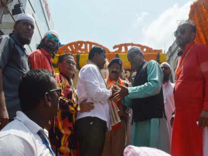 पुणे : एकीकडे काहीजण जाती धर्मांमध्ये भांडत असताना दुसरीकडे गेली 12 वर्षे पुण्यातील बेलबाग चाैकात गणपती विसर्जन मिरवणुकीत हिंदू मुस्लिम एेक्याचे दर्शन हाेत अाहे. पुण्यातील मुस्लिम अाैकाफ वेलफेअर ट्रस्टच्या वतीने लक्ष्मी राेडवरील बेलबाग चाैकात मानाच्या पाच मंडळांच्या अध्यक्षांचे अत्तर, शाॅल, श्रीफळ व पुष्पगुच्छ देऊन स्वागत करण्यात येते. यंदाही ट्रस्टचे कार्याध्यक्ष मुश्ताक पटेल यांच्या हस्ते स्वागत करण्यात अाले.