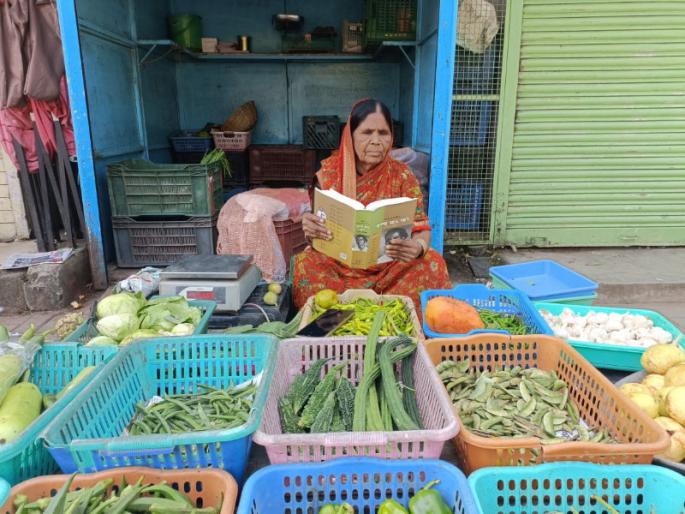 ''पूर्वी मी गावाकडेच शेतात काम करीत होते. वेळ मिळेल तशी वाचन करायची. मला वाचनाची आवड आहे. मुलगा पुण्यात राहताे. त्याला मदत म्हणून मी येथे आले. सकाळच्या वेळी तळजाई टेकडीवर भाजी विक्री करीत पेपर वाचत असते. येथे फिरण्यासाठी येणाऱ्या एका व्यक्तीने मला लोकशाहीर अण्णा भाऊ साठे यांची कादंबरी आणून दिली. ती मी सध्या वाचत आहे. - भागर्थी नेटके, वाचनाचा छंद जपणाऱ्या आजी''