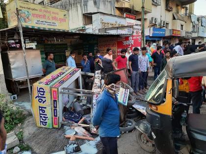 धायरी फाट्याकडून भरधाव वेगाने येणारा एक डंपर मुक्ताई गार्डन जवळ लोखंडी दुभाजक तोडून हातगाड्या व टपऱ्यांमध्ये शिरला. तसेच रस्त्याने जाणाऱ्या रिक्षालाही धडकला.