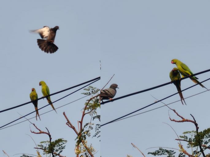 हा व्हिडीओ याच भागातील आहे. पक्षी निरिक्षण करत असताना दोन इमारतींवरून गेलेल्या वायरवर हे राघु-मैनेचे जोडपे बसलेले होते. तेव्हा त्यांचा प्रेमलाप सुरु होता. परंतू, आजुबाजुला कबुतरे आल्याने त्यात व्यत्यय आला. यामुळे त्यांच्यातील एकाने कबुतरांवरच या वायरवर बसू नका म्हणून हाकलण्यास सुरुवात केली. पोपटांच्या जोडीचा फोटो काढण्यासाठी खिशात असलेला मोबाईल काढला होता, नंतर या पोपटाची ही दादागिरी पाहून आपसूकच व्हिडीओकडे वळला आणि हा दादागिरीचा क्षण रेकॉर्ड झाला.