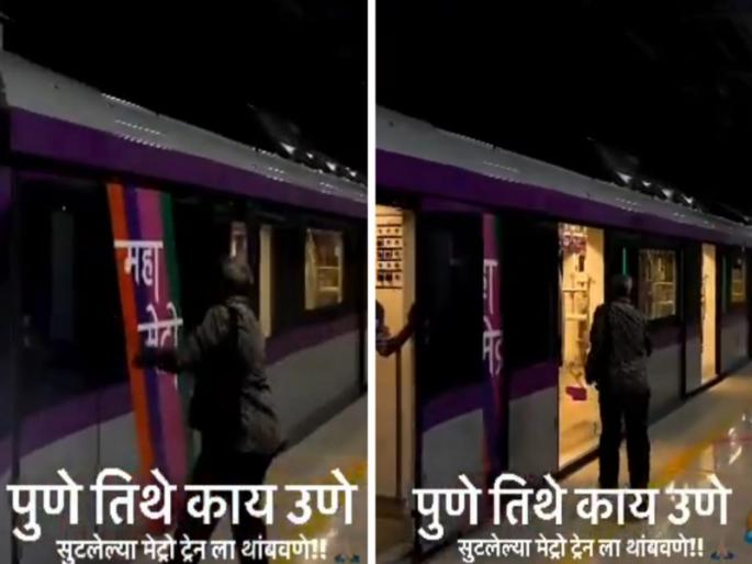 एक ऑगस्टला पंतप्रधान नरेंद्र मोदी पुण्यात आले होते. त्यांनी दगडूशेठचे दर्शन घेऊन मेट्रो, आवास योजना अशा प्रकल्पांचे उदघाटन केले. त्यानंतर दोन विस्तारित मार्गावरून मेट्रो धावण्यास सुरुवात झाली. सद्यस्थितीत नागरिकांचा मेट्रोला चांगलाच प्रतिसाद दिसून येत आहे. त्यातच मेट्रो थांबवण्याचा विनोदी किस्सा सोशल मीडियावर धुमाकूळ घालत आहे. ट्विटरवरून पुणे सिटी लाईफ या पेजवरून हा व्हिडिओ मोठ्या प्रमाणात व्हायरल झाला आहे.