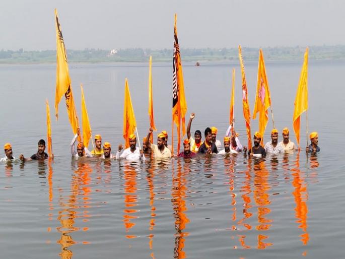 इंदापूरात आंदोलकांची तब्बल दोन तास जलसमाधी; मराठा आंदोलनाला पाठिंबा
