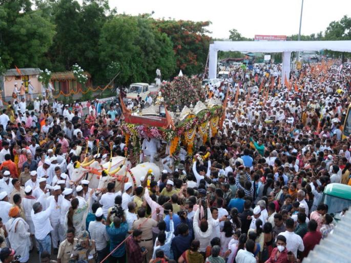 ज्ञानबा तुकाराम आणि विठुनामाच्या जयघोषाने आज कवि मोरोपंतांची बारामती नगरी दुमदुमली. आभाळभरुन पाऊस पडू दे ,रान शिवार फुलू दे’ माझ्या शेतकऱ्यांच्या घामाला दाम मिळु दे, अशी मनात आस ठेवत हे वारकरी भाविकांनी आपल्या भोळ्या भक्तीने विठूरायाला साकडे घातले. शहराच्या वेशीवर श्री तुकोबांच्या पालखीचे बारामती हायटेक टेक्स्टाईल पार्कच्या अध्यक्षा सुनेत्रा पवार, बारामती बँकेचे चेअरमन सचिन सातव, प्रांताधिकारी दादासाहेब कांबळे, उपविभागीय पोलीस अधिकारी गणेश इंगळे, मुख्याधिकारी महेश रोकडे, पोलीस निरीक्षक महेश ढवाण आदी पदाधिकारी अधिकाऱ्यांनी उत्साहात स्वागत केले.