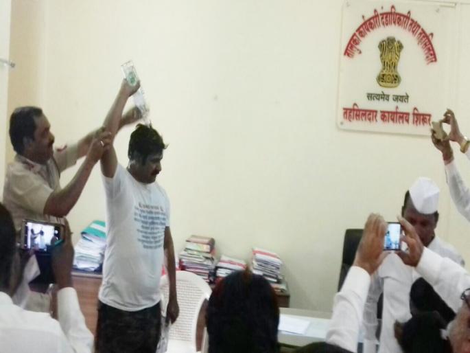 शिरूर तहसीलदारांच्या कचेरीत दारूने अंघोळ