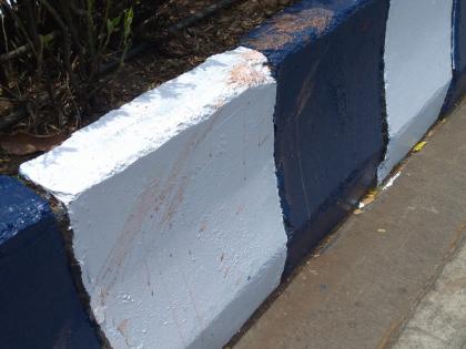 पुण्यातील बंड गार्डन भागात दुभाजकांचे रंगकाम करण्यात येत अाहे. त्यावर काही समाजकंटकांनी थुंकून ते दुभाजक खराब केले अाहेत.