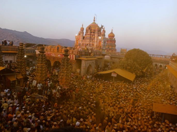 आज दुपारी साडेबारा वाजेपर्यंतच सूर्याला अमावस्या असल्याने याच काळात खंडोबा म्हाळसाच्या उत्सव मूर्तींना कऱ्हा स्नान करणे अपेक्षित असल्याने सकाळी ७ वाजता सोहळ्याने प्रस्थान ठेवले. देवाचे मानकरी पेशव्यांनी इशारत करताच खांदेकरी, मानकरी, उत्सव मूर्तींची पालखी उचलली. बंदुकीच्या फैरी झाडून सोहळ्याला सलामी देण्यात आली. भंडार खोबऱ्याच्या उधळणीत आणि देवाच्या जयघोषात पालखी ने मुख्य गडकोटला प्रदक्षिणा घालुन पालखी बालदारीत आणण्यात आली. देवाच्या पुजारी सेवेकऱ्यांनी उत्सवमूर्तींना पालखीत स्थानापन्न केले आणि मोठ्या जल्लोषात सोहळा गडकोटाबाहेर पडला. यावेळी राज्यभरातून आलेल्या हजारो भाविकांनी भंडारा खोबऱ्याची उधळण केली. मार्तंड देव संस्थान चे माजी विश्वस्त संदीप जगताप, मुख्य कार्यकारी अधिकारी राजेंद्र जगताप ,व्यवस्थापक सतीश घाडगे, गणेश डीखळे आदिंनी सोहळ्याचे नियोजन केले होते. दुपारी १२ वाजता सोहळ्याचे कऱ्हा नदीवर विधिवत स्नान होऊन सोहळा माघारी चे प्रस्थान ठेवणार आहे.