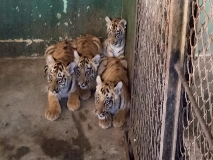 पुणे : साडेतीन महिन्यांपूर्वी कोजागरी पौर्णिमेच्या रात्री पाच बछड्यांना कात्रज येथील राजीव गांधी प्राणी संग्रहालयातील पिवळा पट्टेरी वाघ आणि रिद्धी या वाघिणीने जन्म दिला होता. त्यातील एका बछड्याचा मृत्यू झाला तर उरलेली चारही बछडे सुखरूप आहेत. सोमवारी या बछडयांचा नामकरण सोहळा संपन्न झाला. बछड्यांची नावे अनुक्रमे आकाश, गुरु, सार्थक आणि कोजागिरी पौर्णिमेच्या दिवशी जन्म झाला असल्यामुळे मादी बछडीचे नाव पौर्णिमा असे ठेवले आहे. ही सर्व नावे महापौर मुक्ता टिळक यांनी ठेवली आहे. राजीव गांधी प्राणी संग्रहालयात वाघांच्या बछड्यांचे नामकरण विधी उत्साहात साजरा करण्यात आला. महापौर मुक्ता टिळक यांच्या हस्ते पान साखर पेढे वाढून रिद्धी या वाघींनी जन्म दिलेल्या बछड्यांचे पौर्णिमा, आकाश, गुरु व सार्थक असे नामकरण करण्यात आले. साडेतीन महिन्यांपुर्वी रिद्धी या वाघिणीने पाच बछड्यांंना जन्म दिला. परंतु दुर्दैवाने एक बछड्याचा प्रसुतीनंतर मृत्यू झाला. प्राणी संग्रहालयामध्ये वाघाच्या बछड्यांचा जन्म ही मोठी उपलब्धी आहे. ......................