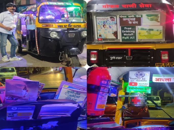 पुणे : राज्यसहित पुण्यातही गरमीने अंगाची लाही लाही होऊ लागली आहे. नागरिकांना प्रवासात उन्हाचे चटके बसू लागलेत. डोक्यावर सूर्याची तीक्ष्ण किरणं, रस्त्यावरून जाताना जाणवणारी उष्णता, या सगळ्यात कोरडा पडलेला घसा यामुळे थंडगार पाण्यासाठी जीव त्रासला आहे. अशातच एका रिक्षाचालकाने नवी शक्कल लढवली आहे. चक्क रिक्षामध्ये छोटेखानी लायब्ररी, प्रथमोपचार पेटी, पिण्याकरता मोफत पाणी, कचरापेटी, अग्निरोधक अशा सर्व सेवा उपलब्ध करून दिल्या आहेत. सिंहगड रस्त्याला राहणाऱ्या केशव गणबोटे असं या रिक्षाचालकाचे नाव आहे.