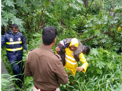 भल्या पहाटे वारजे वाहतूक विभागाचे कर्मचारी डोंगरसिंह महाले, दिनेश सोनवणे तसेच पोलिस ठाण्याचे अधिकारी प्रशांत भोपळे रमेश क्षीरसागर, बाळासाहेब शिरसाठ, राहुल मोरे आदींनी पुन्हा घटना स्थळी शोध घेतला. त्यावेळी ओढ्याचे पानी कमी झाले होते. पोलिसांनी आवाज दिल्यावर अपघातग्रस्त दुचाकी चालक रविराज वडणे (वय २४ रा. सिंहगड रस्ता) यांनी पोलिसांना हात उंचावून आपण आतील बाजूस ब्लॉक वर पडल्याचे निदर्शनास आणून दिले. त्यानंतर पोलिसांनी प्रचंड अडचणीचा सामना करत चिखल माती, गवत, दगडी, झुडुपे, ओढ्यातील गाळ यातून मार्गक्रमण करत युवक पडलेला असलेला ठिकाण गाठले. डोक्याला व पायाला मार लागलेल्या अवस्थेत व चालताही येत नसल्याने त्यास खांद्यावर उचलून घेत परत महामार्गावर आणले व त्यास नजीकच्या रुग्णालयात दाखल केले.