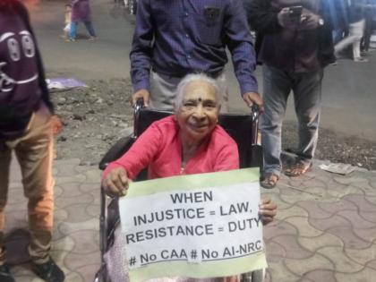 आज गुडलक चाैकात सुरु असलेल्या आंदाेलनात एका 92 वर्षीय आजींंनी देखील सहभाग घेतला हाेता. त्यांना व्हिलचेअरवर आंदाेलनाच्या ठिकाणी आणण्यात आले हाेते. त्यांच्या सहभागाविषयी बाेलताना त्यांच्या सुष्ना डाॅ. शक्तीश्वरी म्हणाल्या, माझे सासरे हे स्वातंत्र्यसेनानी हाेते. त्यांनी ब्रिटीशांच्या विराेधात लढा उभारला. दुर्देवाने आज आपल्याला आपल्याच काही लाेकांच्या विराेधात लढा उभारावा लागत आहे. हे दाेन्ही कायदे देशात दुफळी निर्माण करण्याचे काम करीत आहेत. हा देश धर्मनिरपेक्ष देश आहे. त्यामुळे धर्माच्या नावाने देशाला विभागने याेग्य नाही. असेच पुढे चालू राहिले तर हे लाेक जातीच्या आधारे देशाचे विभाजन करतील.