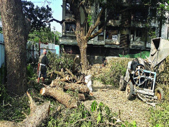 नेरळ गावातील खांडा भागात इमारती बांधल्या जाणार आहेत. त्यामुळे तेथे असलेली झाडे इमारत बांधण्यास अडथळा ठरत आहेत. नेरळ ग्रामपंचायतीकडे जागेच्या मालकाने झाडे तोडण्याची परवानगी मागितली होती. मात्र, ग्रामपंचायतने वनविभागाची परवानगी घेऊन झाडे तोडावीत, असे सूचित केले. या जागेपासून हाकेच्या अंतरावर वनविभागाचे कार्यालय असून, त्या ठिकाणी वनविभागाचे अधिकारी हे दररोज चार वेळा ये-जा करीत असतात. त्या जागेतील १०० वर्षे जुनी झाडे कटर मशिन लावून तोडली जात आहेत. त्या जागेतील झाडे तोडण्याचे काम लाकूडतोडे गेली आठवडाभर करीत असून त्यांचे काम आणखी आठ-दहा दिवस चालणार आहे. मात्र, ठेकेदार असलेल्या झाडे तोडणाऱ्याला वनविभागाचे कार्यालय त्या झाडांपासून ९० मीटर अंतरावर असूनदेखील कोणतीही भीती नाही.
