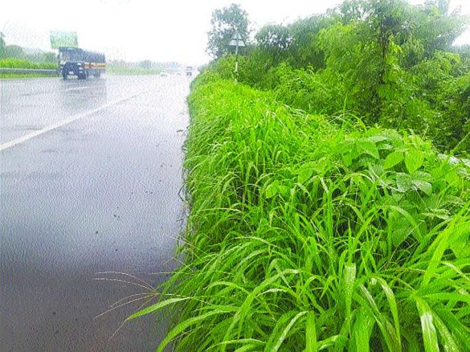 कळंबोली : मुंबई-पुणे महामार्गावर दोन्ही बाजूनी लोखंडाच्या पाइपचे कुंपण घालण्यात आले आहे; परंतु त्यावर मोठ्या प्रमाणात गवत वाढले आहे. त्यामुळे हे कुंपण वाहनचालकाला दिसतच नाही. देखभाल दुरुस्तीसाठी रस्ते विकास महामंडळाने नेमलेल्या एजन्सीकडून त्याकडे दुर्लक्ष होत असल्याचा वाहनधारकांचा आरोप आहे. या प्रकारामुळे अपघातालाही निमंत्रण मिळत आहे. त्यामुळे तातडीने वाढलेल्या गवताची छाटणी करावी, अशी मागणी करण्यात येत आहे.