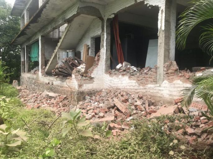 अलिबाग - पर्यावरण आणि शहर नियोजन नियमांचे उल्लंघन केल्याप्रकरणी रायगड जिल्हाधिकारी डॉ. विजय सूर्यवंशी यांनी शुक्रवारी सकाळी शहाजीदा आर. कुंदनमल यांच्या मालकीचा धोकवडे (अलिबाग) येथील बेकायदा बंगला बुलडोझर व अन्य यंत्रसामुग्रीच्या सहाय्याने पाडण्याच्या कारवाईस सुरुवात केली.