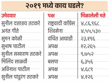 राष्ट्रवादी काँग्रेसचा अजित पवार गट आता महायुतीत आहे. त्यामुळे राष्ट्रवादी काँग्रेस, शिंदेसेना, भाजप अशी महायुती झाली आहे. तर शेकाप, उद्धवसेना, काँग्रेस आणि राष्ट्रवादी काँग्रेसचा शरद पवार गट, अशी इंडिया आघाडीची मोट आहे. २०१९ मध्ये जे सोबत होते, आता ते वेगळे झाले आहेत. जे विरोधात होते ते एकत्र आले आहेत. त्यामुळे लढत रंगतदार होणार आहे.
