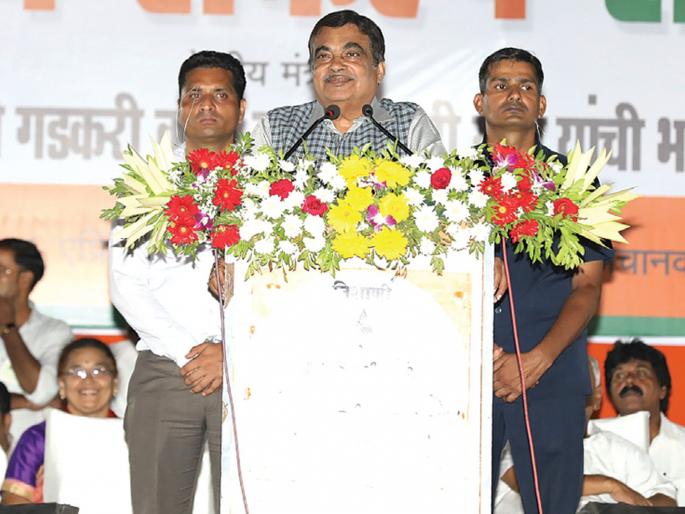 मोहोपाडा : काँग्रेसने गरिबी हटाव म्हणून सांगितले होते. देश श्रीमंत आहे, मात्र जनता गरीब आहे. जेएनपीटीत एक लाख कोटीपेक्षा जास्त खर्च करून रोजगार निर्मिती होत आहे. येथे रायगडचाच कामगार असणार आहे. या भागात बीपीसीएलमध्ये येथील स्थानिकांना नोकरी मिळेल. त्यांच्या मुलांना रोजगार कसा मिळेल याची जास्त चिंता आहे. आई- वडिलांच्या आग्रहाने तिकीट मिळत आहेत. मुंबई, गोव्याचे काम जोरात सुरू असून हा रस्ता फोरलेन सिमेंटचा होईल. महाराष्ट्रात पाच लाख कोटींची रस्त्यांची कामे सुरू आहेत. संपूर्ण महाराष्ट्रातून रस्त्यांचे जाळे विणले जाणार आहे. आज महाराष्ट्रात ठिकठिकाणी कामे सुरू आहेत. चारधाम रस्ता लवकरच पूर्ण होईल. जनतेने परिवर्तन केले म्हणून आज रस्त्यांचे व सोयी-सुविधांचे जाळे विणले गेले आहे. आतंकवादी संघटनांना उचलून फेकणारा मजबूत पंतप्रधान आहे, असे प्रतिपादन केंद्रीयमंत्री नितीन गडकरी यांनी केले.शिवसेना - भाजप - आरपीआय - रासप - शिवसंग्राम - रयत क्रांती संघटना महायुतीचे उमेदवार श्रीरंग बारणे यांच्या प्रचारार्थ शुक्रवारी मोहोपाडा येथे जाहीर सभा झाली. या वेळी नितीन गडकरी बोलत होते. पिण्याच्या पाण्याचा प्रश्न सोडविण्यासाठी पावले उचलली गेली, शेतकऱ्यांच्या आत्महत्या होणार नाहीत यासाठी केंद्र व राज्य सरकारने पावले उचलली आहेत. बेरोजगारांना रोजगार देण्याचे काम भाजप सरकार करत आहे. मुद्रा योजनेतून बिनव्याजी कर्ज देऊन बेरोजगारी हटविण्याचे काम हे सरकार करीत आहे. शेतीचे उत्पादन दुप्पट व्हावे यासाठी सरकारने प्रयत्न केले. हा देश जगाच्या पाठीवर यावा यासाठी नरेंद्र मोदींनी प्रयत्न केले, असे माजी आमदार देवेंद्र साटम यांनी सांगितले.आ. प्रशांत ठाकूर म्हणाले की, या परिसरातील कारखानदारी वाढत आहे. येथील एचओसी कारखाना १९९५ मध्ये कात टाकत होता. येथे बीपीसीएलसारखा कारखाना आल्याने येथील शेतकऱ्यांत नवसंजीवनी निर्माण झाली आहे. या परिसरात नव्याने येणारा रोजगार वाढणार आहे. जे देशात पाहायला मिळत ते रायगड जिल्ह्यात पाहायला मिळत आहे.येथील प्रकल्पग्रस्तांना येथील कारखान्यात नोकरी मिळाली पाहिजे, येथे बीपीसीएलकडून हॉस्पिटल व्हावे, ज्या जमिनी शेतकºयांच्या ताब्यात आहे त्या त्यांना मिळाव्यात, अशी मागणी जेएनपीटीचे विश्वस्त महेश बालदी यांनी के ली. या वेळीकेंद्रीय मंत्री अनंत गीते, माजी खासदार रामशेठ ठाकूर आदी उपस्थित होते.