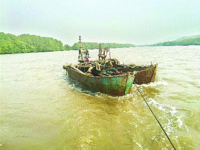 धरमतर खाडीच्या अलिबाग तालुका क्षेत्रात बेकायदा रेती उत्खनन करणाऱ्या दोन बोटी आणि त्यावरील दोन सक्शन पंप मंगळवारी जप्त करण्यात आले. यावरील खलाशांनी तत्काळ खाडीत उड्या मारून पळ काढला.