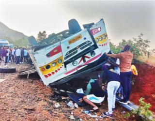ताम्हिणी घाटात बस उलटली; दोन तरुणींचा जागीच मृत्यू; पर्यटकांनी बस हळू चालवा, असे सांगूनही चालकाचे दुर्लक्ष