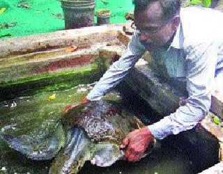 नांदगाव समुद्रकिनारी सापडले जखमी अवस्थेतील कासव